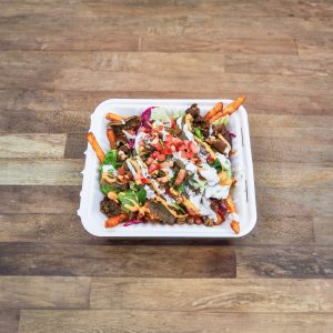 A burrito style kebab. Homemade lavash filled with veggies, sauce, and falafel, rolled like a burrito.